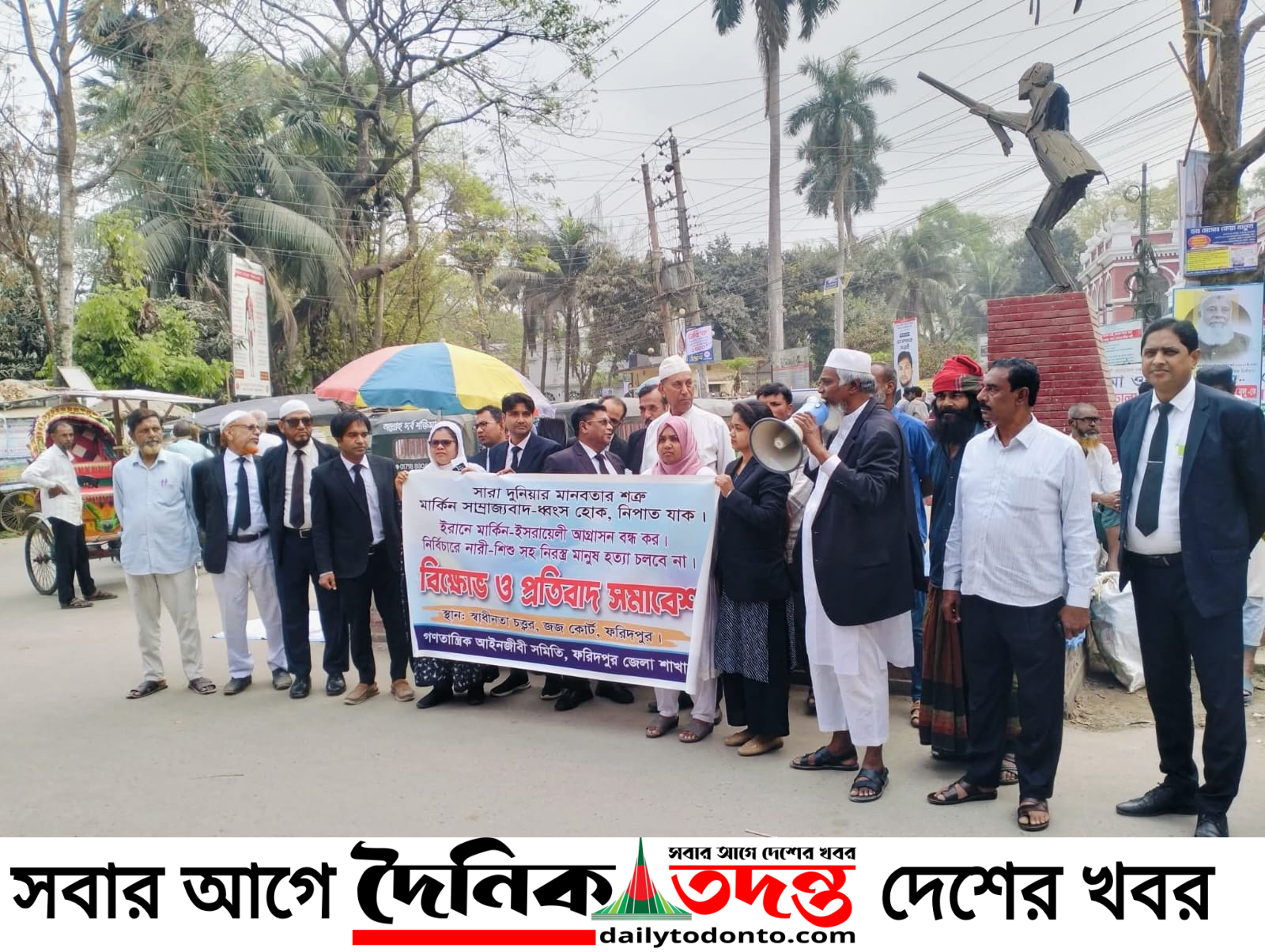 ইরানে মার্কিন-ইসরায়েল আগ্রাসন বন্ধের দাবিতে ফরিদপুরে আইনজীবীদের বিক্ষোভ