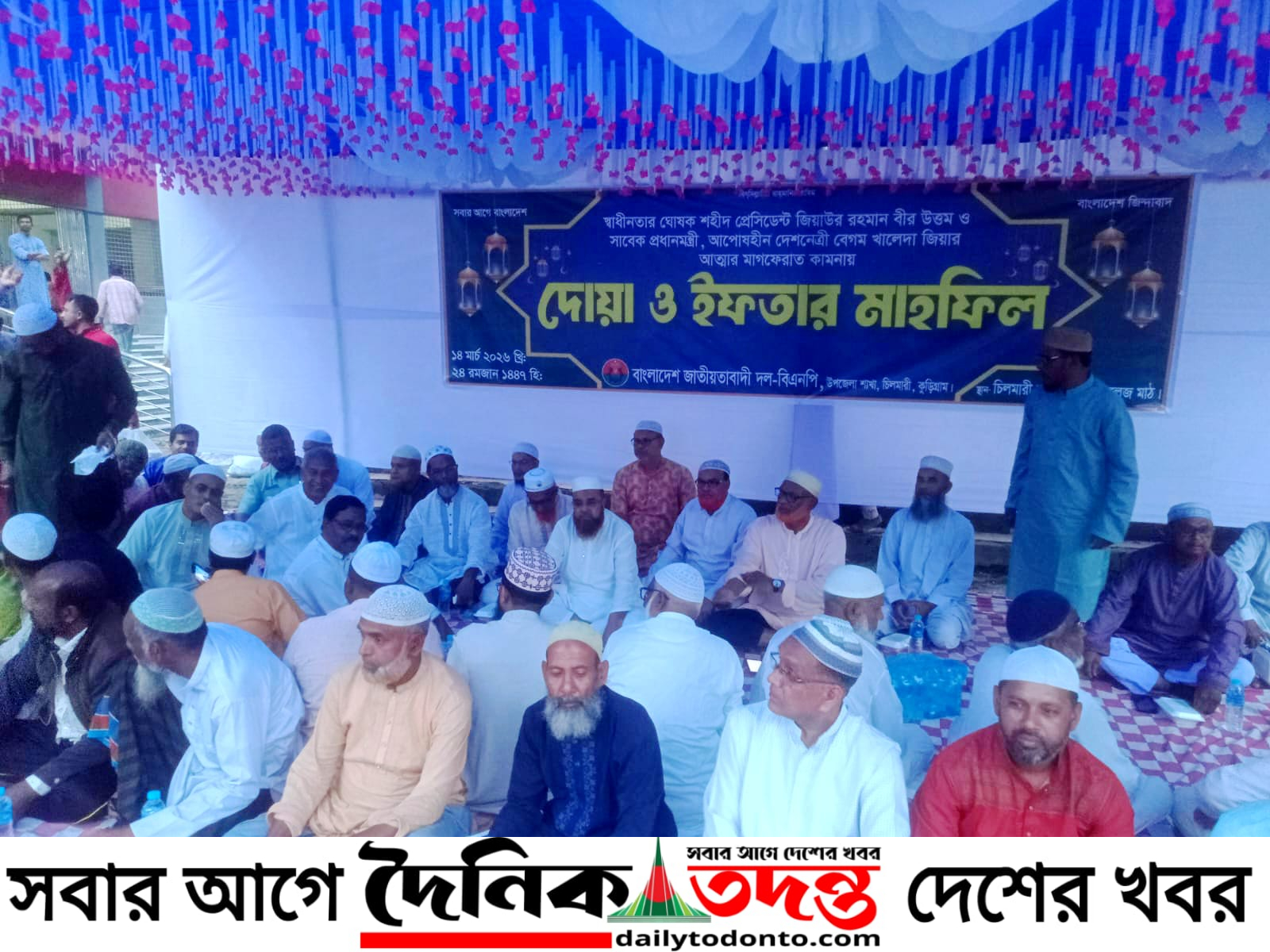 শনিবার (১৪ই মার্চ) বিকাল ৫.৩০মিনিটে "বাংলাদেশ জাতীয়তাবাদী দল (বিএনপি'র)" চিলমারী উপজেলা শাখার আয়োজনে, চিলমারী মহিলা ডিগ্রী কলেজ মাঠে "উপজেলা আহ্বায়ক আলহাজ্ব আঃ বারী সরকারের, সভাপতিত্বে দোয়া ও ইফতার মাহফিল অনুষ্ঠিত হয়েছে। এ সময় প্রধান অতিথি হিসেবে উপস্থিত ছিলেন, বাংলাদেশ জাতীয়তাবাদী দল বিএনপি'র জেলা আহ্বায়ক মোস্তাফিজার রহমান মোস্তফা, বিশেষ অতিথি হিসেবে উপস্থিত ছিলেন, জেলা বিএনপির সদস্য সচিব, আলহাজ্ব সোহেল হোসেন কায়কোবাদ, জেলা বিএনপির যুগ্ন আহ্বায়ক, হাসিবুর রহমান হাসিব, আরও উপস্থিত ছিলেন, সহ অধ্যাপক ও উপজেলা বিএনপির সদস্য সচিব আবু হানিফা, সিনিয়র যুগ্ম আহ্বায়ক রফিকুল ইসলাম স্বপন, ফজলুল হক, জোবাইদুল ইসলাম সুইট, শাহ্ আলম সবুজ, উপজেলা স্বেচ্ছাসেবক দলের সদস্য সচিব আখতারুজ্জামান বাবু, সদস্য সোহেল রানাসহ আরও অনেক উপস্থিত ছিলেন। পরে আলোচনা শেষে মাওলানা ইয়ার আলী সাহেবের মোনাজাতের মাধ্যমে ইফতার মাহফিল অনুষ্ঠিত হয়েছে।