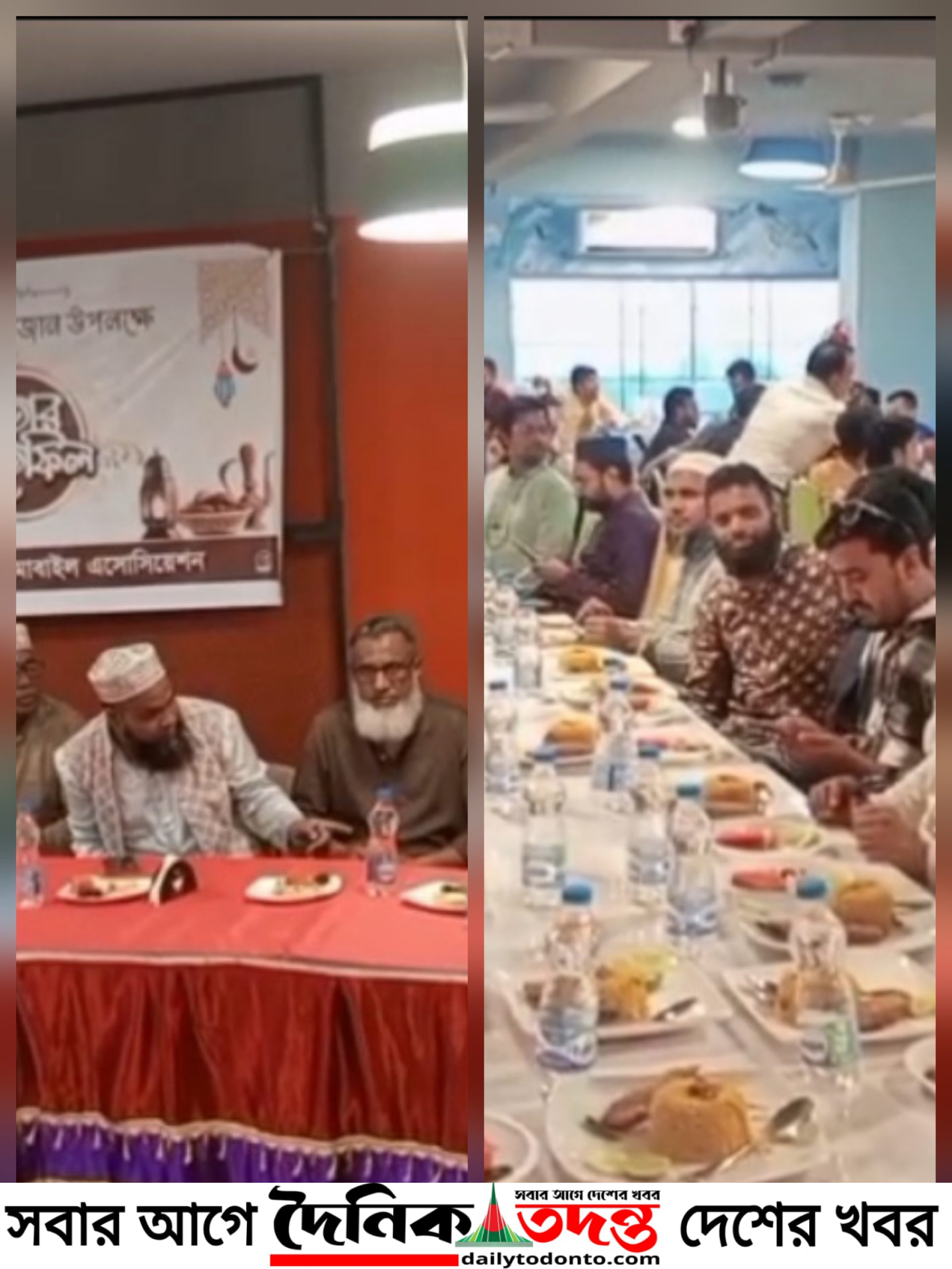 পবিত্র মাহে রমজান উপলক্ষে জামালপুর জেলা মোবাইল এসোসিয়েশনের উদ্যোগে ইফতার ও দোয়া মাহফিল অনুষ্ঠিত হয়েছে।ইফতার ও দোয়া মাহফিলের প্রধান অতিথি হিসেবে থাকেন জামালপুর সদর ৫ এর এমপি এড.শাহ মো: ওয়ারেছ আলী মামুন, সঞ্চালনায় মাহমুদুল হাসান মুক্তা, সভাপতিত্ব করেন জুয়েল রানা সভাপতি জামালপুর জেলা মোবাইল এসোসিয়েশন, প্রধান বক্তা জেলা বিএনপির সিনিয়র যুগ্ম সাধারণ সম্পাদক মোঃ খন্দকার আহসুজ্জামান রুমেল, আরো উপস্থিত ছিলেন জামালপুর জেলা মোবাইল অ্যাসোসিয়েশন এর নেতৃবৃন্দরা দোকান মালিক ও কর্মচারী বিন্দুদের উপস্থিতিতে অনুষ্ঠান সাফল্য মণ্ডিত হয়।