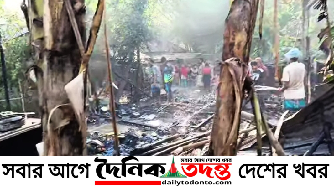 রাজশাহীর মোহনপুরে বৈদ্যুতিক শর্ট সার্কিটের আগুনে বসতবাড়ি পুড়ে ছাই