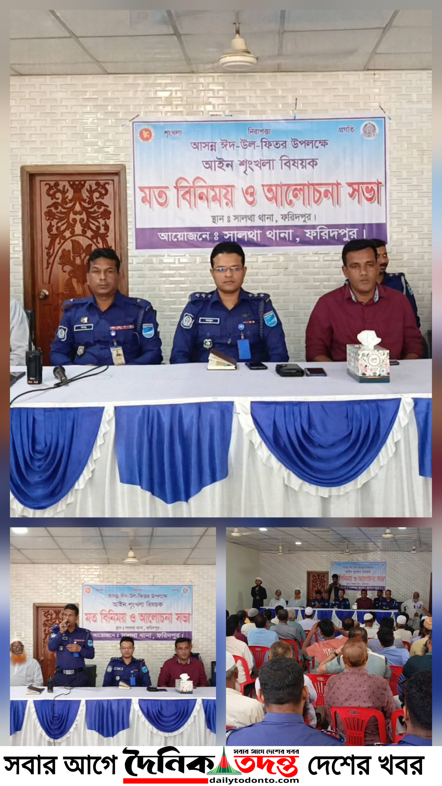 পবিত্র ঈদুল ফিতর উপলক্ষে ফরিদপুরের সালথায় আইন-শৃঙ্খলা বিষয়ক মতবিনিময় সভা করেছেন সালথা থানা পুলিশ।